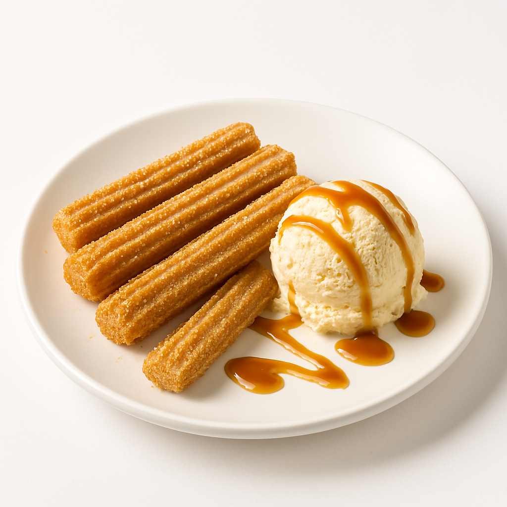 Fried pastries served with caramel sauce and Häagen-Dazs vanilla ice cream